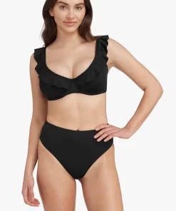 Sea Level Women’s Swimwear Eco Essentials Black Eco Essentials F Cup Frill Underwire Bra | Black
