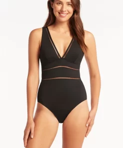 Sea Level Women’s Swimwear Dark Romance Black Dark Romance Plunge One Piece With Bonded Belt | Black