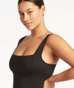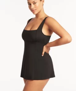 Sea Level Women’s Swimwear Eco Essentials Black Eco Essentials Square Neck Swim Dress Best Sellers | Black