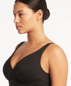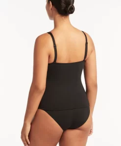 Sea Level Women’s Swimwear Eco Essentials Black Tops Eco Essentials Cross Front Multifit Singlet Top | Black