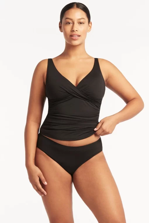 Sea Level Women’s Swimwear Eco Essentials Black Tops Eco Essentials Cross Front Multifit Singlet Top | Black